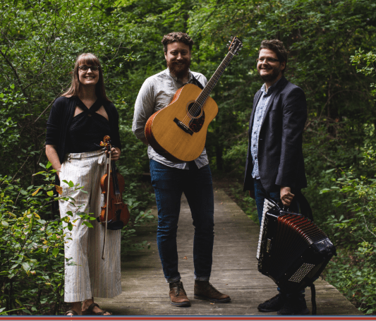 “Bellwether is an exciting new international folk trio. Collectively hailing from Orkney in Scotland, Somerset in England, and Boston in the USA, their sound brings a fresh perspective to traditional music while simultaneously remaining entirely folkie. Stoking the embers sparked by pioneers of the previous generation’s folk revival Louise Bichan, Alex Cumming, and Eric McDonald coalesce their talents to create a rich and savory feast of three part harmony and dynamic multi-instrumentalism. Crystal clear voices swirl above driving fiddle, sparky accordion and dynamic guitar lines, culminating in a tapestry that reaches from dulcet to all out raucous, and everywhere in between. Cumming’s strong piano playing is featured often, and creative arrangements are rounded out with the occasional sounds of banjo and mandolin, performed by Bichan and McDonald respectively.