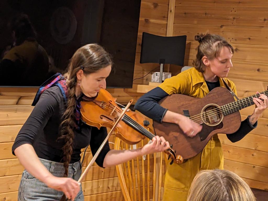 Rooted in the musical traditions of New England, Helen Kuhar & Rose Jackson present traditional tunes from Ireland, New England, Quebec, and France, and craft vocal harmonies for age-old songs with modern relevance. Rose(fiddle, vocals), draws her sound from her upbringing in the folk scene of western Massachusetts, grounded in a deep love of old repertoire and her experience touring contra dance festivals with bands Polaris and Stove Dragon. Helen (guitar, vocals, harmonium) hails from Cambridge, MA and can be found hosting Irish sessions around the greater Boston area, accompanying traditional musicians from across the region, and playing for contra dances around the country. Together, this duo invite audiences in for stories, melodies, and lyrics that unite us all in our shared humanity.