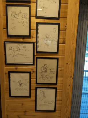 In addition to the “Brownington Ceilidh Club” sign, other items hanging on the walls in our concert space include some wonderful drawings by France Prevost. France brings along her sketch pad whenever she comes to a concert, and sketches the musicians. She puts the finishing touches on the sketches when she gets home and then shares them with us to frame and hang on the walls. These drawings are such a nice addition to the decor and another example of how we’re building community through traditional music.