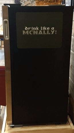 When Ian and Liz got married in 2018, Cantrip played at their wedding. During the reception, we were talking with Eric about future plans for the BCC. I mentioned that we’d like to get some kind of beverage cooler so we didn’t have to keep buying ice for coolers. Shortly after that, a beverage cooler was delivered to our house as a gift from Cantrip. There were a couple of stickers on the cooler: one that said “Katie’s Kooler” and another one that said “Drink like a McNally”. Remember the story about the plaque for the McDonald Stage that Katie provided? These stickers were Eric’s response to that plaque 😀. When Katie played at the BCC in April 2019 we had a dedication ceremony for the cooler.