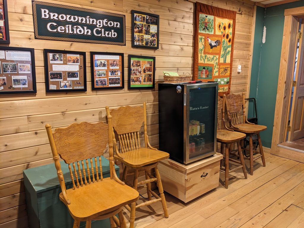 Shortly after we became known as the Brownington Ceilidh Club, a group of our friends got together and surprised us with a lovely sign to hang in our “concert room”. It was the first item we hung on the walls in our newly renovated space, and has been used by many folks to take special photos.