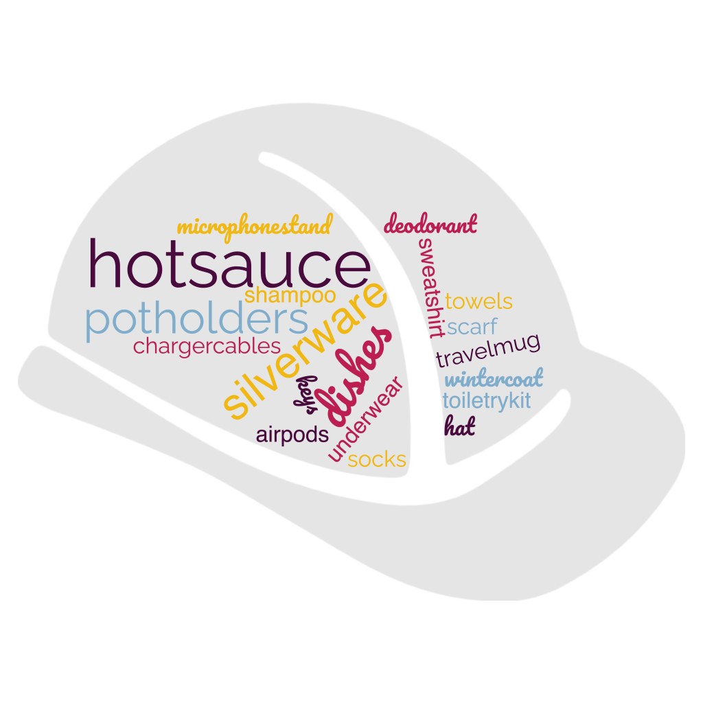 Over the years the BCC has amassed quite a collection of items left behind after our concerts. Items we’ve found over the years include: keys, underwear, socks, winter jacket, air pods, charger cables, hot sauce, microphone stand, toiletry kit, travel mug, dishes and silverware, potholders, deodorant, shampoo, scarf, hat sweatshirt, hot sauce (again), towels….